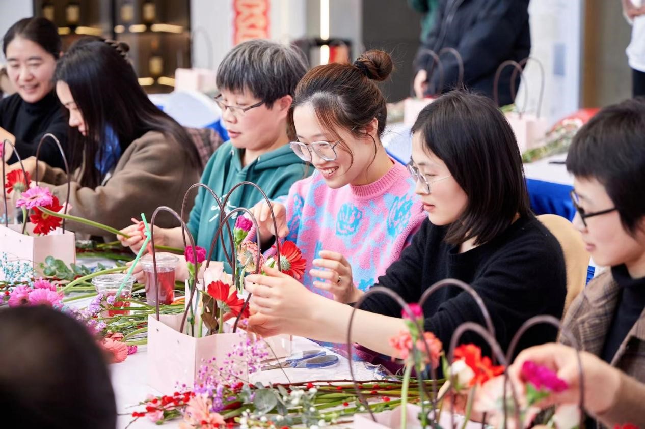 此次活動結(jié)合盛和公司房地產(chǎn)行業(yè)特點,將活動與樓盤推廣相結(jié)合。地點設(shè)在盛和公司與融創(chuàng)公司合作的平潮“潮啟未來”項目?;顒友埩嘶ㄋ嚴蠋?,給大家講授選花、裁剪、顏色搭配、造型等方面的插花技巧。一枝枝鮮花鋪在桌面上,大家在花藝師的指導(dǎo)下,進行嘗試和實踐。在一修一剪之間,桌上一盆盆細致精美、別出心裁的插花作品逐漸誕生。插花結(jié)束后,又舉辦了分享樓盤推廣點贊活動,將樓盤推廣信息在朋友圈內(nèi)進行展示,在15分鐘內(nèi)點贊最高6名女職工還可以得到特殊的獎勵。大家踴躍參加,發(fā)動親朋好友推廣點贊,活動現(xiàn)場歡聲笑語,你追我趕,進行了激烈的PK。