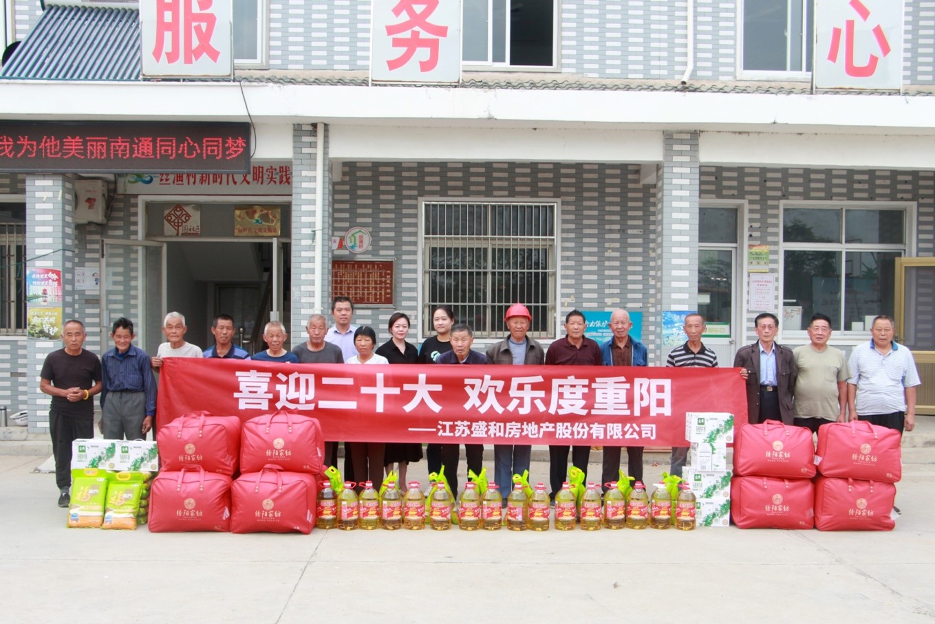 9月23日重陽佳節(jié)前夕,為充分發(fā)揮省級文明單位示范帶動作用,弘揚中華民族尊老敬老的傳統(tǒng)美德,盛和房產(chǎn)聯(lián)系到幫扶聯(lián)建單位如皋絲漁村,開展“喜迎二十大,歡樂度重陽”慰問活動,為共計十五戶年邁孤寡老人及困難家庭送去節(jié)日慰問品,并向他們致以溫暖的節(jié)日問候。