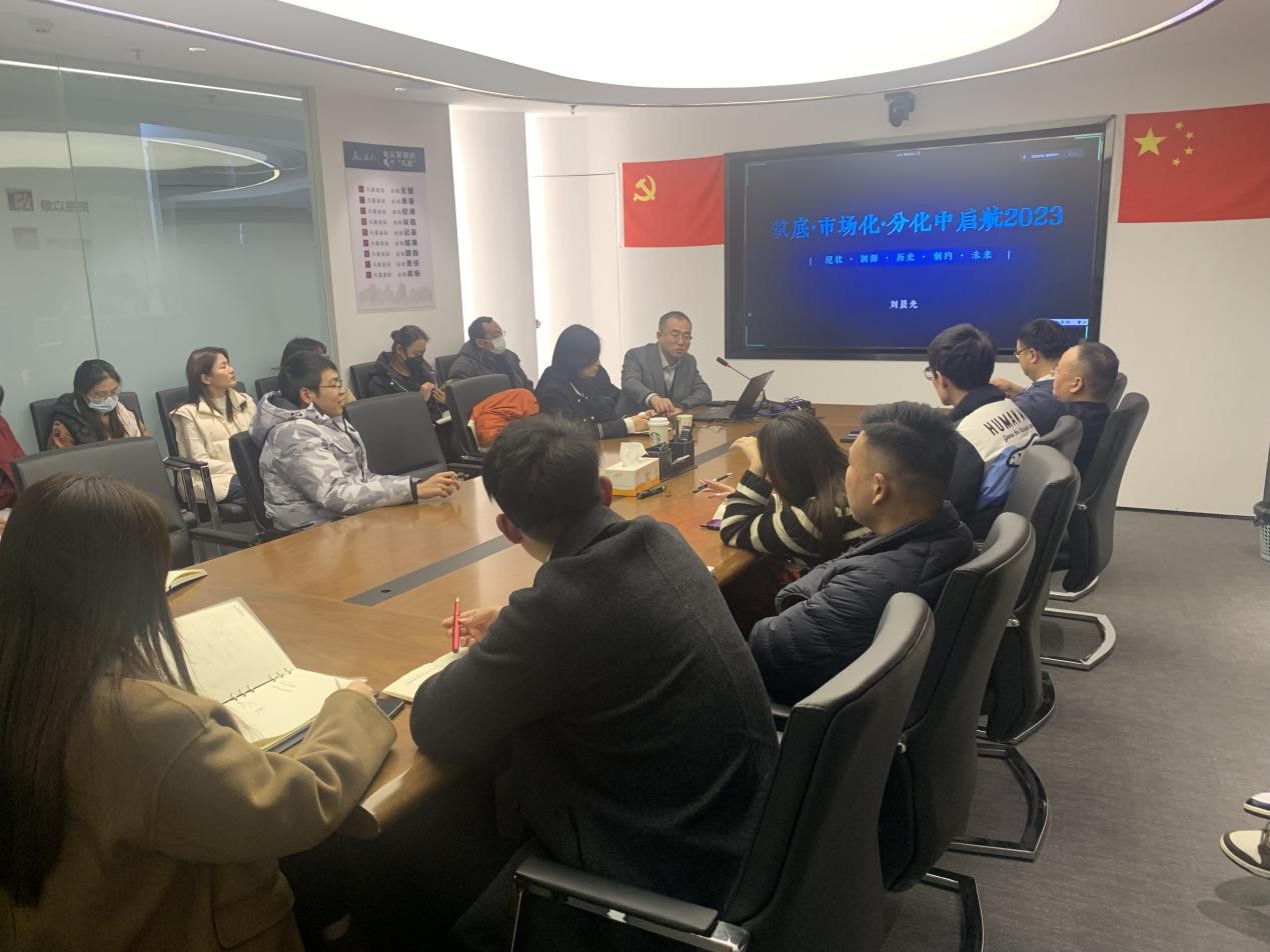 為更好認識房地產(chǎn)變局之下行業(yè)發(fā)展現(xiàn)狀及預(yù)期,切實提升行業(yè)知識水平,明確2023年公司投資業(yè)務(wù)的發(fā)展方向,2月24日下午,盛和房產(chǎn)組織召開《行業(yè)總結(jié)與市場研判》分享交流會。特邀資深戰(zhàn)略定位與管理咨詢專家——上海克而瑞信息技術(shù)有限公司企業(yè)戰(zhàn)略部總經(jīng)理劉晨光作專題輔導(dǎo)。盛和房產(chǎn)及全資、控股子公司全體員工參加。